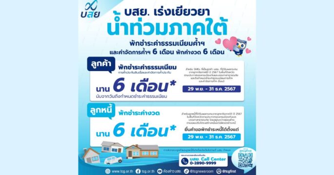 บสย.ส่งมาตรการด่วน เยียวยา “ลูกค้า-ลูกหนี้” น้ำท่วมภาคใต้ พักค่าธรรมเนียม-พักหนี้ 6 เดือน ช่วย SMEs ฟื้นฟูกิจการ