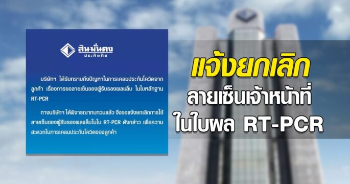 “สินมั่นคงประกันภัย” แจ้งยกเลิกใช้ลายเซ็นเจ้าหน้าที่ ในใบผล RT-PCR เพื่อเคลมประกันโควิดแล้ว