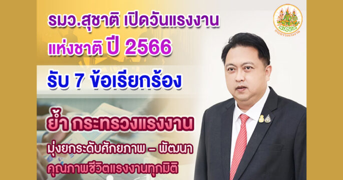 รมว.สุชาติ เปิดวันแรงงานแห่งชาติ ปี 2566 รับ 7 ข้อเรียกร้อง ย้ำ กระทรวงแรงงาน มุ่งยกระดับศักยภาพ พัฒนาคุณภาพชีวิตแรงงานทุกมิติ