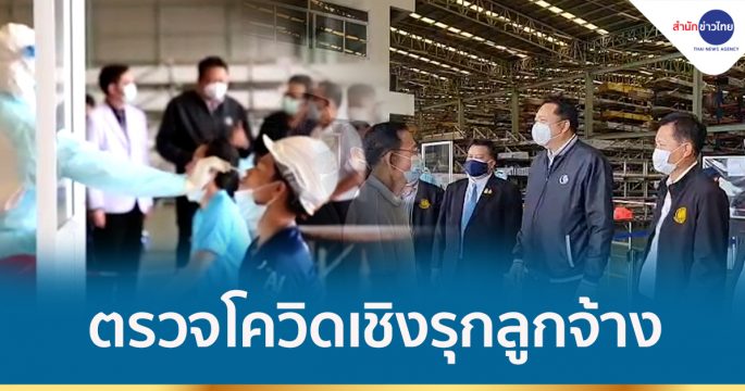 “สุชาติ” รมว.แรงงาน นำคณะลงพื้นที่สมุทรปราการ ตรวจเยี่ยมให้กำลังใจและมอบสิ่งของแก่ลูกจ้างที่ตรวจโควิด-19 เชิงรุกเพื่อผู้ประกันตนในสถานประกอบการ ณ บริษัท ไทยเม็ททอล อลูมิเนียม จำกัด