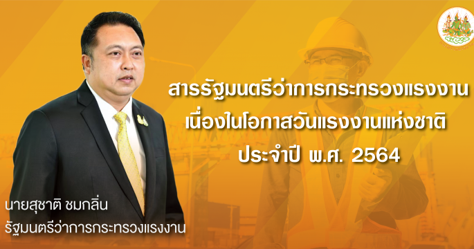ก.แรงงาน ส่งสารขอบคุณพี่น้องผู้ใช้แรงงานเนื่องในวันแรงงานแห่งชาติ ประจำปี พ.ศ. 2564 ที่แรงงานทั้งในและต่างประเทศมีส่วนสำคัญสร้างความมั่นคงให้แก่เศรษฐกิจและสังคมไทย และพร้อมพัฒนาแรงงานให้มีศักยภาพสูง ยกระดับคุณภาพชีวิต