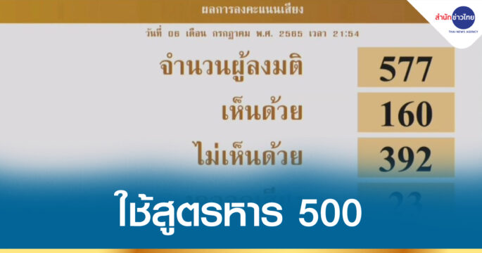 ที่ประชุมร่วมรัฐสภา โหวตร่าง พ.ร.ป.เลือกตั้ง ส.ส. หรือกฎหมายลูกเลือกตั้ง รายมาตรา ได้ข้อสรุปเลือกตั้ง ส.ส.ครั้งต่อไป ใช้บัตรเลือกตั้ง 2 ใบ คนละเบอร์ คำนวณ ส.ส.ปาร์ตี้ลิสต์ ด้วยสูตรหาร 500