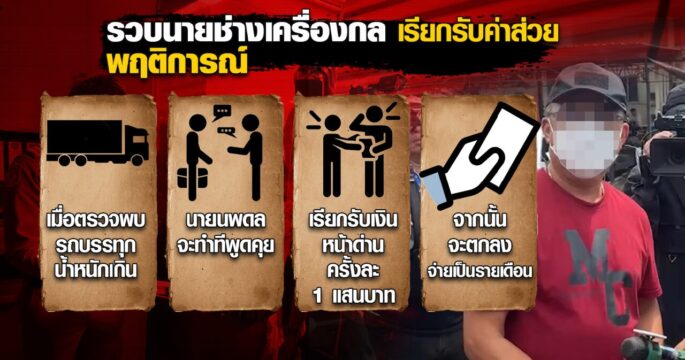 ตำรวจเร่งขยายผลส่วยรถบรรทุก ลั่นสาวให้ถึงตัวการใหญ่ในกรมทางหลวง ส่วนนายช่างที่ถูกจับได้ประกันตัวแล้ว ด้านสหพันธ์การขนส่งทางบกฯ แฉยังมีป้ายสติกเกอร์ผู้มีอิทธิพลอีกราว 20 ป้าย ไม่โดนตรวจสอบ