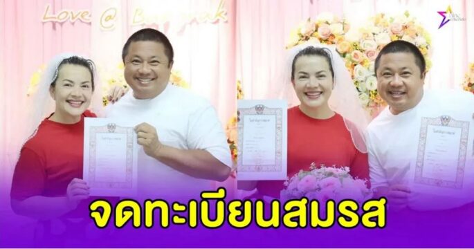 “หนูแหม่ม” ควง “บ๊อบบี้” จดทะเบียนสมรสที่เขตบางรัก หลังอยู่กินกันมา 25 ปี