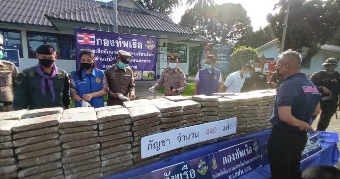 สถานีเรือบึงกาฬ กองทัพเรือตรวจยึดกัญชา 400 กิโลกรัม