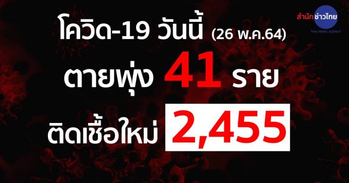 สถานการณ์โควิด-19 ในไทยวันนี้ เสียชีวิตพุ่ง 41 ราย ส่วนผู้ป่วยรายใหม่รวม 2,455 ราย แบ่งผู้ติดเชื้อใหม่ 1,976 ราย และในเรือนจำ 479 ราย