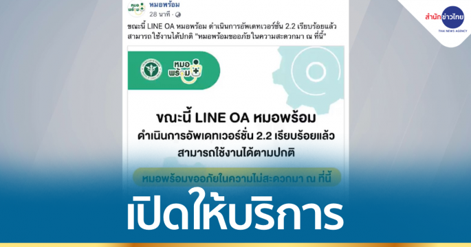 Line Official “หมอพร้อม” เปิดให้บริการตามปกติแล้ว หลังปิดปรับปรุงช่วง 07.00 น. ที่ผ่านมา ขณะที่ยอดจองฉีดวัคซีน ณ เวลา 08.00 น. อยู่ที่ 577,423 คน