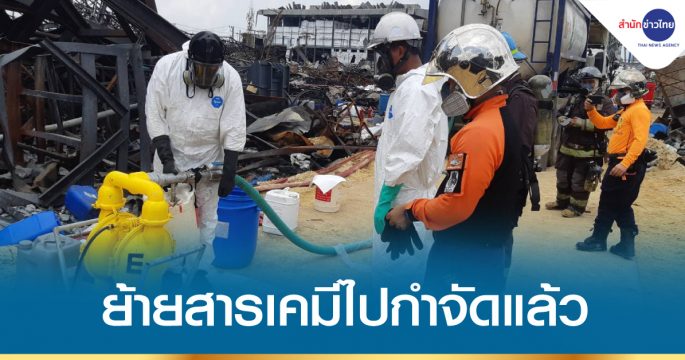 อธิบดีกรมควบคุมมลพิษ เผยเจ้าหน้าที่เคลื่อนย้ายสารเคมีตกค้างที่เกิดเหตุไฟไหม้โรงงานหมิงตี้ฯ ไปกำจัดแล้ว โดยจะเร่งดำเนินการให้แล้วเสร็จใน 5 วัน