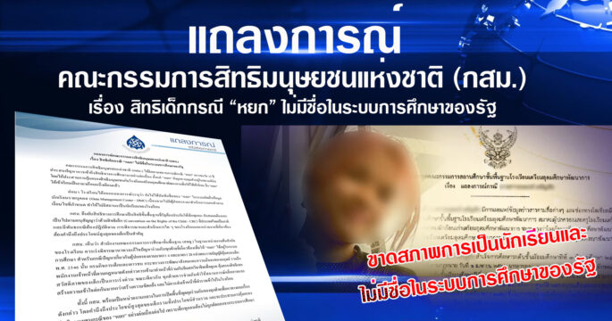 กสม. 19 มิ.ย.-คณะกรรมการสิทธิมนุษยชนแห่งชาติ ออกแถลงการณ์ ปกป้องสิทธิ “หยก” วอนทุกฝ่ายที่เกี่ยวข้องร่วมหาทางออก เพื่อให้หยกได้อยู่ในระบบการศึกษา