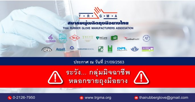 สมาคมผู้ผลิตถุงมือยางไทยเตือนระวังกลุ่มมิจฉาชีพหลอกขายถุงมือยาง ชักชวนร่วมลงทุน