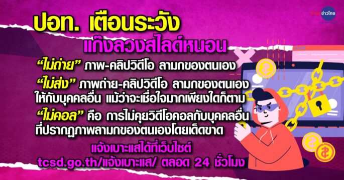 ปอท. เตือนชายไทยระวังแก๊งลวงสไลด์หนอน หลอกอัดคลิป