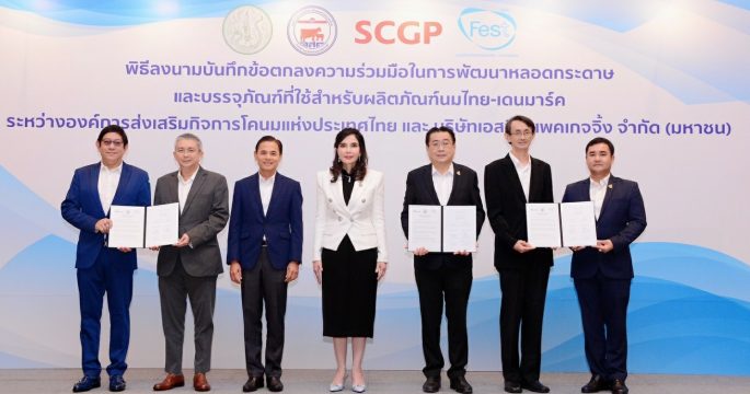 เกษตรฯ จับมือ SCGP วิจัยและพัฒนาบรรจุภัณฑ์ทีนมไทย-เดนมาร์ค พร้อมเปิดตัวใช้หลอดกระดาษ นำร่องการผลิตสินค้าเป็นมิตรต่อสิ่งแวดล้อม ช่วยลดการใช้หลอดพลาสติก 7,000,000 หลอด ลดปริมาณขยะพลาสติก 2.5 ตันต่อปี