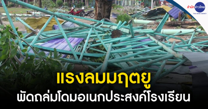 แรงลมมฤตยู พัดถล่มโดมอเนกประสงค์โรงเรียน
