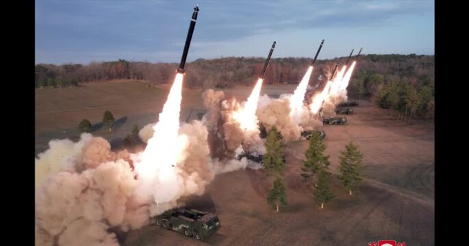 เกาหลีเหนือทดสอบยิงจรวดจากเครื่องยิงจรวดหลายลำกล้อง