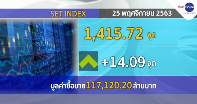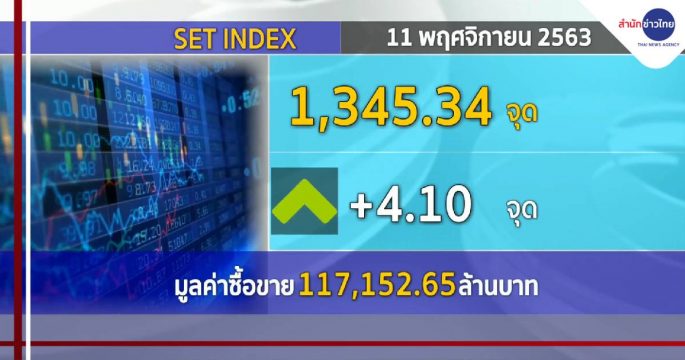 กรุงเทพฯ 17 ต.ค. – SET ปิดวันนี้ที่ 1,433.40 จุด เพิ่มขึ้น 6.29 จุด (+0.44%) มูลค่าซื้อขายราว 38,504.36 ล้านบาท การซื้อขายหุ้นเช้าวันนี้ ดัชนีรีบาวด์ทางเทคนิค ทำจุดต่ำสุด 1,429.18 จุด และสูงสุด 1,441.00 จุด ส่วนหลักทรัพย์เปลี่ยนแปลงวันนี้เพิ่มขึ้น 304 หลักทรัพย์ ลดลง 158 หลักทรัพย์ และไม่เปลี่ยนแปลง 177 หลักทรัพย์ .-สำนักข่าวไทย