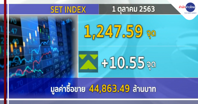 ตลาดหลักทรัพย์ปิดวันนี้ที่ระดับ 1,247.59 จุด เพิ่มขึ้น 10.55 จุด มูลค่าการซื้อขาย 44,863.49 ล้านบาท