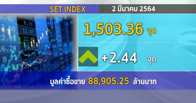 ตลาดหลักทรัพย์ปิดวันนี้ที่ระดับ ปิดวันนี้ที่ระดับ 1,503.36 จุด เพิ่มขึ้น 2.44 จุด (+0.16%) มูลค่าการซื้อขาย 88,905.25 ล้านบาท ตามต่างประเทศ หลัง Bond yield ลดลง เก็งหุ้นรายตัวตามปัจจัยเฉพาะ