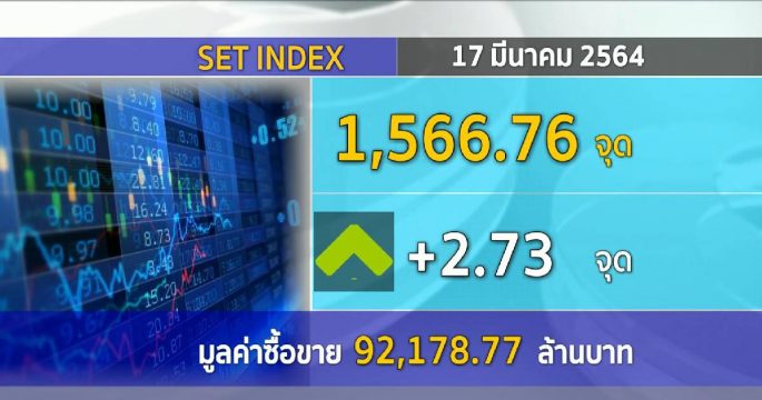 ตลาดหลักทรัพย์ปิดวันนี้ที่ระดับ 1,566.76 จุด เพิ่มขึ้น 2.73 จุด (+0.17%) มูลค่าการซื้อขาย 92,178.77 ล้านบาท แกว่งไซด์เวย์แคบคล้ายต่างประเทศ ระหว่างรอลุ้นผลประชุมเฟด