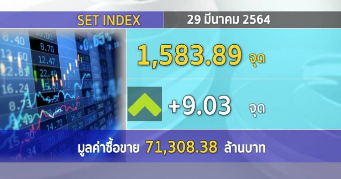 ตลาดหลักทรัพย์ปิดวันนี้ที่ระดับ 1,583.89 จุด เพิ่มขึ้น 9.03 จุด (+0.57%) มูลค่าการซื้อขาย 71,308.38 ล้านบาท ดีกว่าตลาดต่างประเทศ ได้แรงหนุนจากทำ Window Dressing ก่อนปิดงบฯ