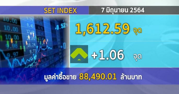 ตลาดหลักทรัพย์ ปิดวันนี้ที่ระดับ 1,612.59 จุด เพิ่มขึ้น 1.06 จุด (+0.07%) มูลค่าการซื้อขาย 88,490.01 ล้านบาท นับหนึ่งเร่งฉีดวัคซีนโควิดสร้างความคาดหวังเศรษฐกิจฟื้น