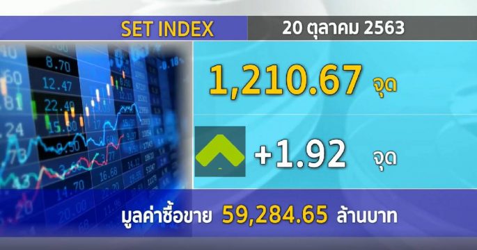 ตลาดหลักทรัพย์ปิดวันนี้ที่ระดับ 1,210.67 จุด เพิ่มขึ้น 1.92 จุด (+0.16%) มูลค่าการซื้อขาย 59,284.65 ล้านบาท