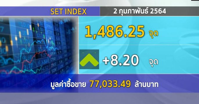 ตลาดหลักทรัพย์ปิดวันนี้ที่ระดับ 1,486.25 จุด เพิ่มขึ้น 8.20 จุด (+0.55%) มูลค่าการซื้อขาย 77,033.49 ล้านบาท ปรับตัวขึ้นในทิศทางเดียวกับตลาดต่างประเทศ
