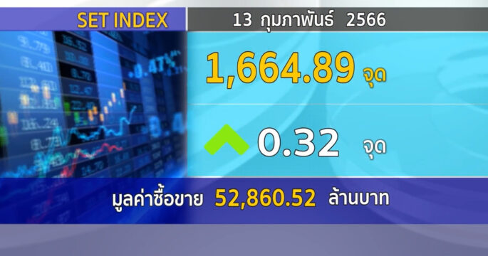 SET ปิดวันนี้ที่ 1,664.89 จุด เพิ่มขึ้น 0.32 จุด (+0.02%) มูลค่าการซื้อขาย 52,860.52 ล้านบาท