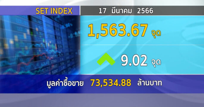 SET ปิดวันนี้ที่ 1,563.67 จุด เพิ่มขึ้น 9.02 จุด (+0.58%) มูลค่าการซื้อขาย 73,534.88 ล้านบาท