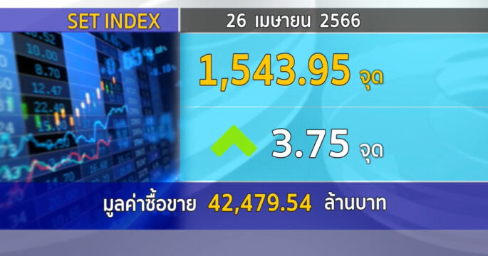 SET ปิดวันนี้ที่ 1,543.95 จุด เพิ่มขึ้น 3.75 จุด (+0.24%) มูลค่าการซื้อขาย 42,479.54 ล้านบาท