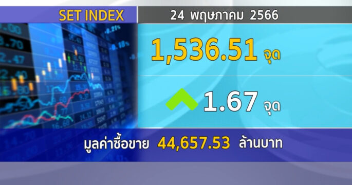 SET ปิดวันนี้ที่ 1,536.51 จุด เพิ่มขึ้น 1.67 จุด (+0.11%) มูลค่าการซื้อขาย 44,657.53 ล้านบาท