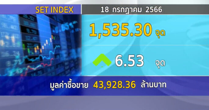 ตลาดหลักทรัพย์ฯ ปิดวันนี้ 1,535.30 จุด เพิ่มขึ้น 6.53 จุด (+0.43%) มูลค่าซื้อขาย 43,928.36 ล้านบาท