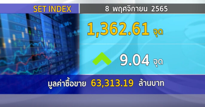 ตลาดหลักทรัพย์ ปิดวันนี้ที่ระดับ 1,632.61 จุด เพิ่มขึ้น 9.04 จุด (+0.56%) มูลค่าการซื้อขาย 63,313.19 ล้านบาท