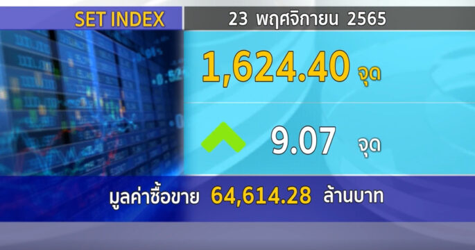 ตลาดหลักทรัพย์ ปิดวันนี้ที่ 1,624.40 จุด เพิ่มขึ้น 9.07 จุด (+0.56%) มูลค่าการซื้อขาย 64,614.28 ล้านบาท