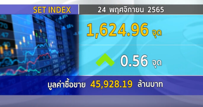 ตลาดหลักทรัพย์ ปิดวันนี้ที่ 1,624.96 จุด เพิ่มขึ้น 0.56 จุด (+0.03%) มูลค่าการซื้อขาย 45,931.18 ล้านบาท