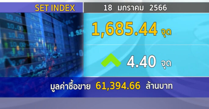 SET ปิดวันนี้ที่ 1,685.44 จุด เพิ่มขึ้น 4.40 จุด (+0.26%) มูลค่าการซื้อขาย 61,394.66 ล้านบาท