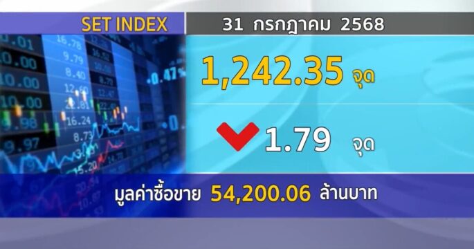 กทม. 26 ก.ย.-ตลาดหลักทรัพย์ฯ ปิดวันนี้ 1,278.74 จุด ลดลง 9.52 จุด (-0.74%) มูลค่าซื้อขาย 36,245.78 ล้านบาท การซื้อขายหุ้นวันนี้ ดัชนีปรับตัวลงและเคลื่อนไหวแดนลบตลอดทั้งวัน โดยทำระดับต่ำสุด 1,278.20 จุด และสูงสุด 1,288.13 จุด ส่วนหลักทรัพย์เปลี่ยนแปลงวันนี้เพิ่มขึ้น 219 หลักทรัพย์ ลดลง 228 หลักทรัพย์ และไม่เปลี่ยนแปลง 202 หลักทรัพย์.-สำนักข่าวไทย