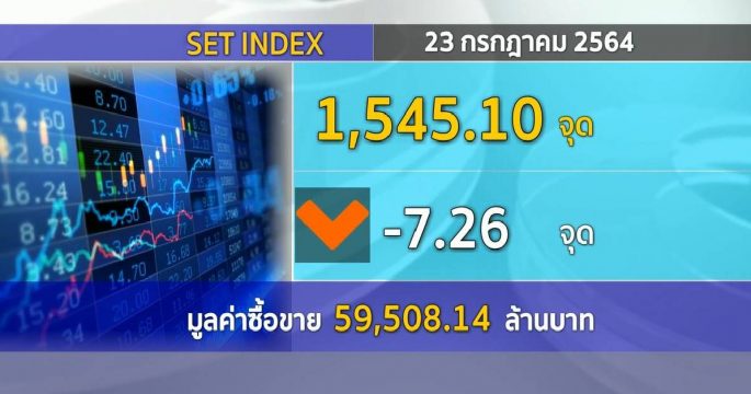 ตลาดหลักทรัพย์ ปิดวันนี้ที่ระดับ 1,545.10 จุด ลดลง 7.26 จุด (-0.47%) มูลค่าการซื้อขาย 59,508.14 ล้านบาท ตามตลาดเอเชีย หลังโควิดระบาดหนัก กดดันเศรษฐกิจ