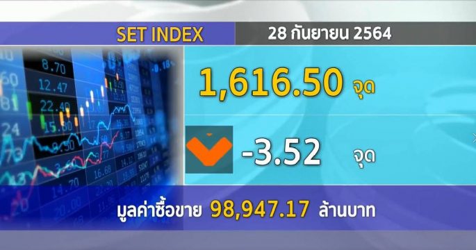 ตลาดหลักทรัพย์ ปิดวันนี้ที่ระดับ 1,616.50 จุด ลดลง 3.52 จุด (-0.22%) มูลค่าการซื้อขาย 98,947.17 ล้านบาท หุ้นแกว่งตัวในกรอบแคบไร้ทิศทาง หลังไม่มีปัจจัยใหม่หนุน โดยมีสถานการณ์น้ำท่วมกดดัน
