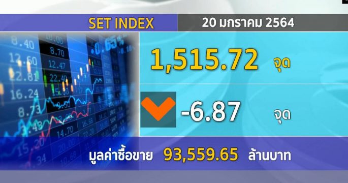 ตลาดหลักทรัพย์ปิดวันนี้ที่ระดับ 1,515.72 จุด ลดลง 6.87 จุด (-0.45%) มูลค่าการซื้อขาย 93,559.65 ล้านบาท ปรับฐานรอพิธีเข้ารับตำแหน่งประธานาธิบดีสหรัฐ, ขายแบงก์-โรงกลั่นกดดัน