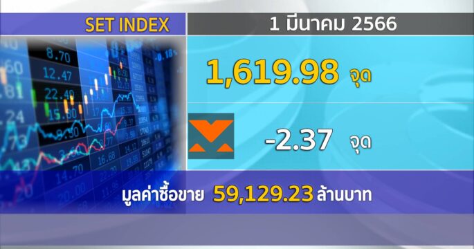 SET ปิดวันนี้ที่ 1,619.98 จุด ลดลง 2.37 จุด (+0.15%) มูลค่าซื้อขายราว 59,129.23 ล้านบาท