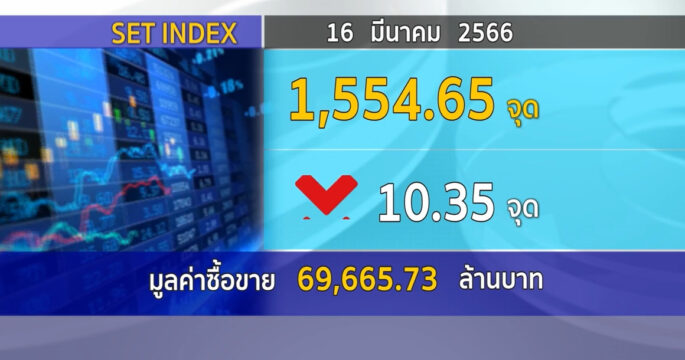 SET ปิดวันนี้ที่ 1,554.65 จุด ลดลง 10.35 จุด (-0.66%) มูลค่าการซื้อขาย 69,665.73 ล้านบาท