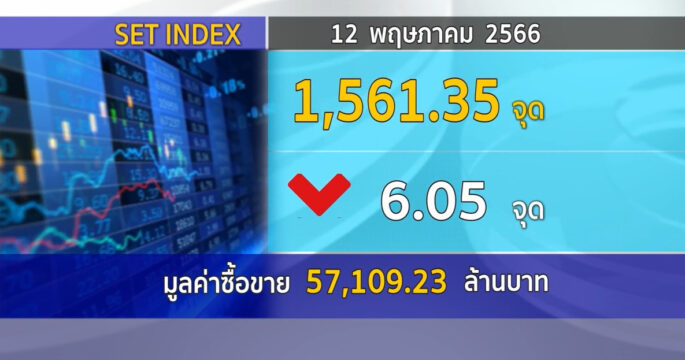 SET ปิดวันนี้ที่ 1,561.35 จุด ลดลง 6.05 จุด (-0.39%) มูลค่าการซื้อขาย 57,109.23 ล้านบาท