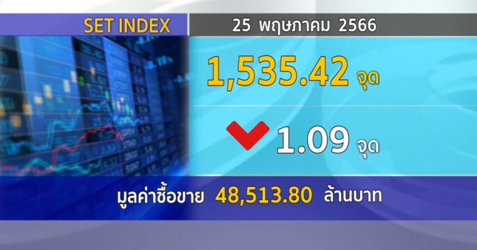 SET ปิดวันนี้ที่ 1,535.42 จุด ลดลง 1.09 จุด (-0.07%) มูลค่าการซื้อขาย 48,513.80 ล้านบาท