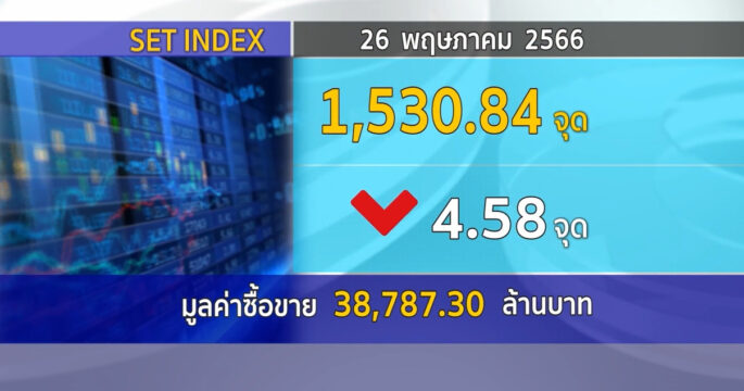 SET ปิดวันนี้ที่ 1,530.84 จุด ลดลง 4.58 จุด (-0.30%) มูลค่าการซื้อขาย 38,787.30 ล้านบาท