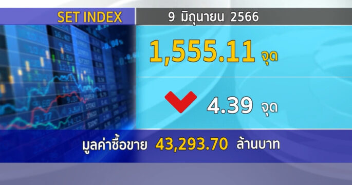 SET ปิดวันนี้ที่ 1,555.11 จุด ลดลง 4.39 จุด (-0.28%) มูลค่าการซื้อขาย 43,293.70 ล้านบาท