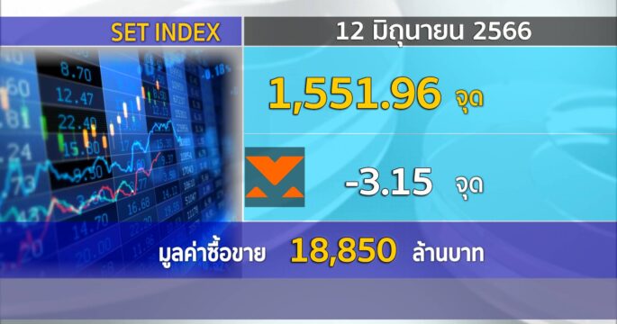 ตลาดหลักทรัพย์ฯ ปิดช่วงเช้าวันนี้ 1,551.96 จุด ลดลง 3.15 จุด (-0.20%) มูลค่าการซื้อขายราว 18,850 ล้านบาท