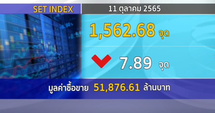 ตลาดหลักทรัพย์ ปิดวันนี้ที่ระดับ 1,562.68 ลดลง 7.89 จุด (-0.50 %) มูลค่าการซื้อขาย 51,876.61 ล้านบาท