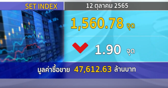 ตลาดหลักทรัพย์ ปิดวันนี้ที่ระดับ 1,560.78 ลดลง 1.90 จุด (-0.12%) มูลค่าการซื้อขาย 47,612.63 ล้านบาท