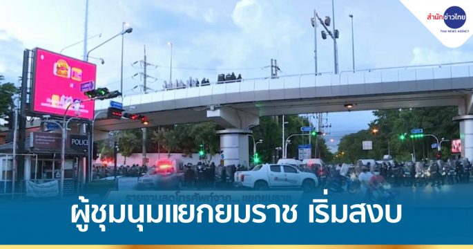 เหตุชุมนุมที่แยกยมราชเริ่มสงบ เจ้าหน้าที่บางส่วนยังปักหลักตรึงกำลัง ขณะที่ผู้ชุมนุมแตกไปรวมกลุ่มที่แยกดินแดง