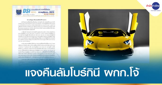 ดีเอสไอ แจงข้อมูลการคืนรถยนต์ลัมโบร์กินีอดีต ผกก.โจ้